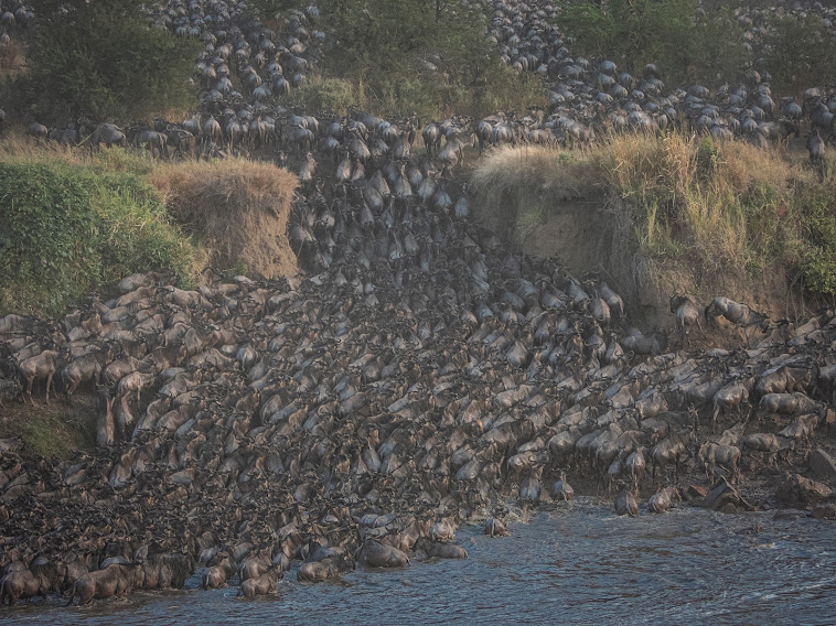 Samo przejście antylop trwało krótko, może z 15 minut. Nie wiem ile ich w tamtym momencie przeszło. Obserwowaliśmy jak następne grupy nadchodzą, gromadzą się, aż w końcu znajdzie się jakaś odważna żeby skoczyć :)) W ciągu ok. miesiąca rzekę przekracza prawie 2 miliony antylop! Mimo, że nad rzekę wracaliśmy, nie widzieliśmy więcej przejść. Widowisko warte tych pieniędzy, które wydaliśmy! Emocje jakie nam towarzyszyły są nie do opisania i zawsze będziemy wspominać to co widzieliśmy :)) Po trzech dniach wróciliśmy do poprzedniego campu w Centralnym Serengeti. W dalszym ciągu obserwowaliśmy zwierzęta, ale od wielkich stad już oddalaliśmy się. W następnym poście pokażę Wam migrację z troszkę innej perspektywy.